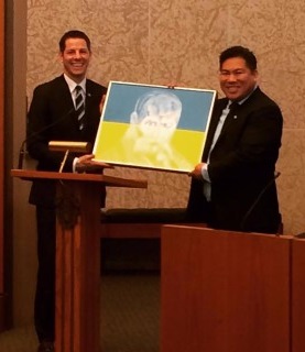 Two hundred year memorial of Taras Shevchenko, Her artwork Shevchenko was presented to Deputy Mayor Mike Pagtakhan for permanent collection at Winnipeg City Hall.