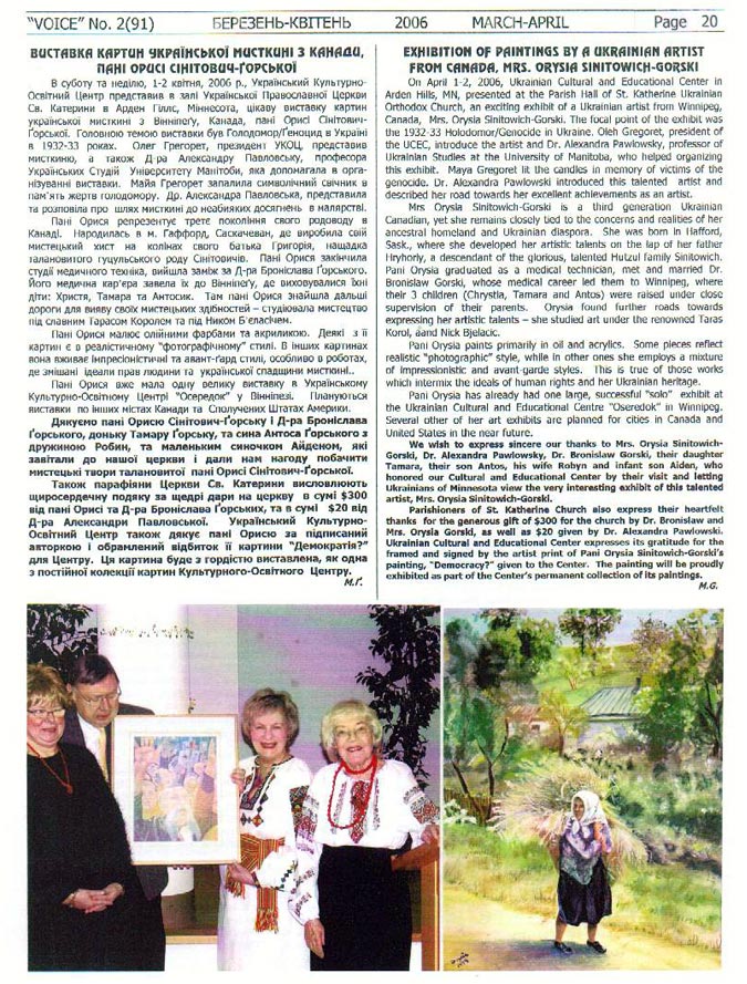 Exhibition of paintings by a Ukrainian artist from Canada, Mrs. Orysia Sinitowich-Gorski